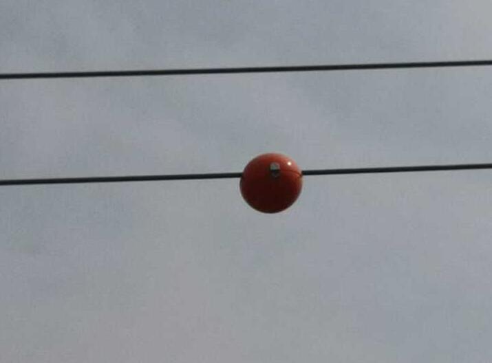 對此,深圳市特力康科技有限公司研發(fā)了高壓警示球,該裝置通過絕緣夾具固定在高壓輸電導(dǎo)線上,采用感應(yīng)取電方式,獲取設(shè)備工作所需電源,給LED顯示屏供電,并在夜間高亮度顯示,以達(dá)到警示的效果,當(dāng)有行人、車輛、塔吊、船舶等經(jīng)過裝置下方時(shí),雷達(dá)探測單元立即啟動(dòng),并聯(lián)動(dòng)語音警示單元,啟動(dòng)警笛及爆閃警示燈,提醒線路下方的行人、車輛、船舶、塔吊注意保持安全距離。