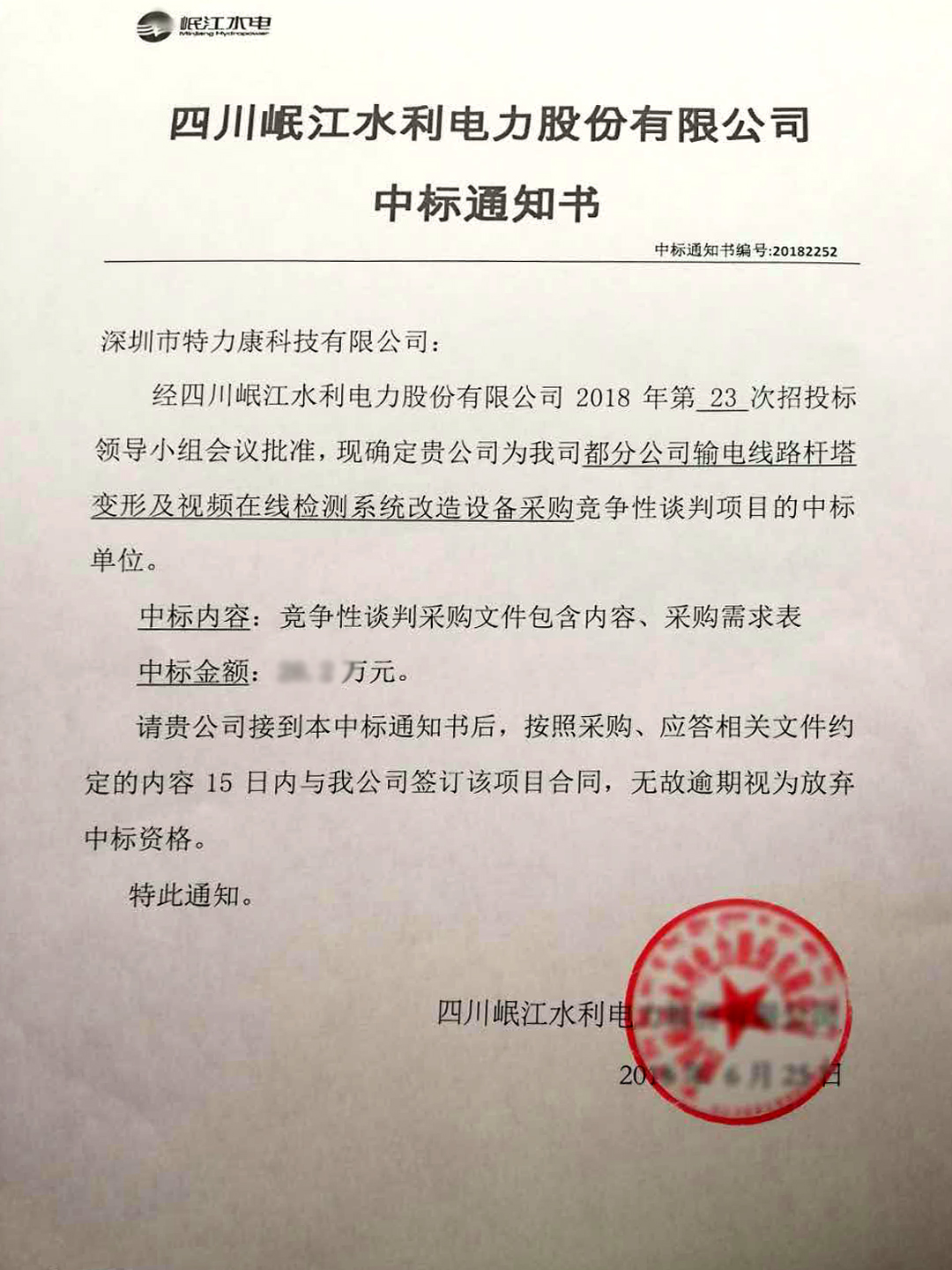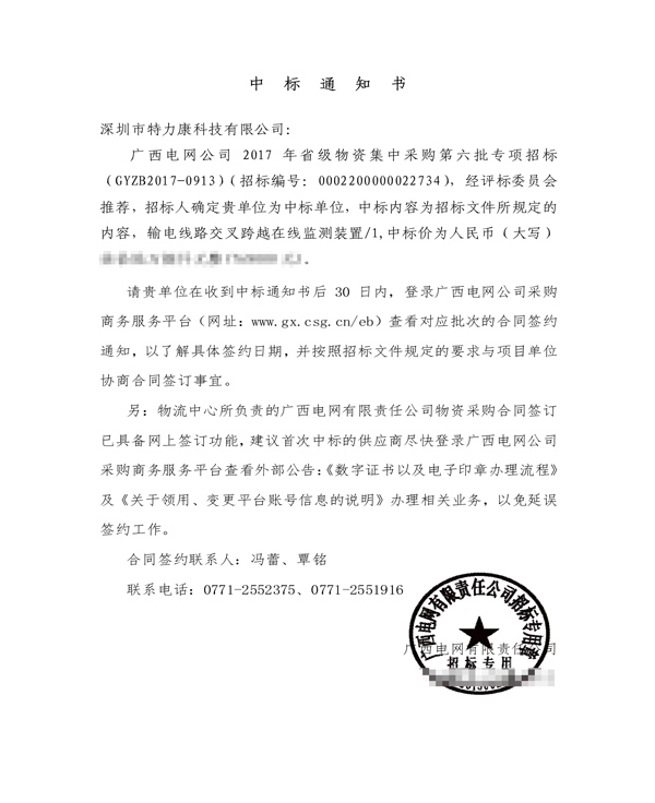 特力康中標國網(wǎng)黑龍江送變電工程公司的2024年度第18次物資類競爭性談判采購項目——慶陽驅鳥器物資框 特力康中標國網(wǎng)甘肅省電力公司省管產業(yè)單位2024年第五次物資競爭性談判授權采購項目 中標喜訊:深圳市特力康科技有限公司成功入圍許繼集團綜合能源公司輸電線路視頻在線監(jiān)測裝置模塊集采項目 中標喜訊:特力康成功中標國網(wǎng)重慶市電力公司渝中一片區(qū)項目 特力康成功中標國網(wǎng)天津市電力公司2024年第二次?物?資招標項目 特力康中標國網(wǎng)安徽省電力有限公司蕪湖供電公司2024年3月非物質采購項目 四川電力用特力康架空輸電線路山火監(jiān)測裝置,筑牢林區(qū)輸電 “防火墻”? 遼寧電力啟用特力康多視角監(jiān)拍裝置,全維度守護輸電安全? 破解黃土高原沉降難題:山西電力用特力康北斗裝置守桿塔安全? 山東電力啟用特力康動態(tài)版智能激光驅鳥器,動態(tài)防控守護變電站安全? 湖南超高壓電力啟用特力康球機 AI 監(jiān)測裝置,智能守護輸電通道安全? 廣西電力啟用特力康高壓電纜護層環(huán)流監(jiān)控設備,筑牢電纜安全防線? 山東電力用上特力康綜合驅鳥器,多手段守護變電站安全? 陜西電力啟用特力康智能預警系統(tǒng),多維監(jiān)測守護輸電安全? 寧夏配電線路安裝了我司防外破電子化智能警示牌