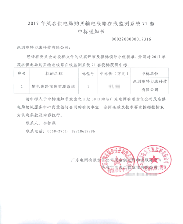 特力康中標(biāo)國(guó)網(wǎng)黑龍江送變電工程公司的2024年度第18次物資類(lèi)競(jìng)爭(zhēng)性談判采購(gòu)項(xiàng)目——慶陽(yáng)驅(qū)鳥(niǎo)器物資框 特力康中標(biāo)國(guó)網(wǎng)甘肅省電力公司省管產(chǎn)業(yè)單位2024年第五次物資競(jìng)爭(zhēng)性談判授權(quán)采購(gòu)項(xiàng)目 中標(biāo)喜訊:深圳市特力康科技有限公司成功入圍許繼集團(tuán)綜合能源公司輸電線(xiàn)路視頻在線(xiàn)監(jiān)測(cè)裝置模塊集采項(xiàng)目 中標(biāo)喜訊:特力康成功中標(biāo)國(guó)網(wǎng)重慶市電力公司渝中一片區(qū)項(xiàng)目 特力康成功中標(biāo)國(guó)網(wǎng)天津市電力公司2024年第二次?物?資招標(biāo)項(xiàng)目 特力康中標(biāo)國(guó)網(wǎng)安徽省電力有限公司蕪湖供電公司2024年3月非物質(zhì)采購(gòu)項(xiàng)目 四川電力用特力康架空輸電線(xiàn)路山火監(jiān)測(cè)裝置,筑牢林區(qū)輸電 “防火墻”? 遼寧電力啟用特力康多視角監(jiān)拍裝置,全維度守護(hù)輸電安全? 破解黃土高原沉降難題:山西電力用特力康北斗裝置守桿塔安全? 山東電力啟用特力康動(dòng)態(tài)版智能激光驅(qū)鳥(niǎo)器,動(dòng)態(tài)防控守護(hù)變電站安全? 湖南超高壓電力啟用特力康球機(jī) AI 監(jiān)測(cè)裝置,智能守護(hù)輸電通道安全? 廣西電力啟用特力康高壓電纜護(hù)層環(huán)流監(jiān)控設(shè)備,筑牢電纜安全防線(xiàn)? 山東電力用上特力康綜合驅(qū)鳥(niǎo)器,多手段守護(hù)變電站安全? 陜西電力啟用特力康智能預(yù)警系統(tǒng),多維監(jiān)測(cè)守護(hù)輸電安全? 寧夏配電線(xiàn)路安裝了我司防外破電子化智能警示牌