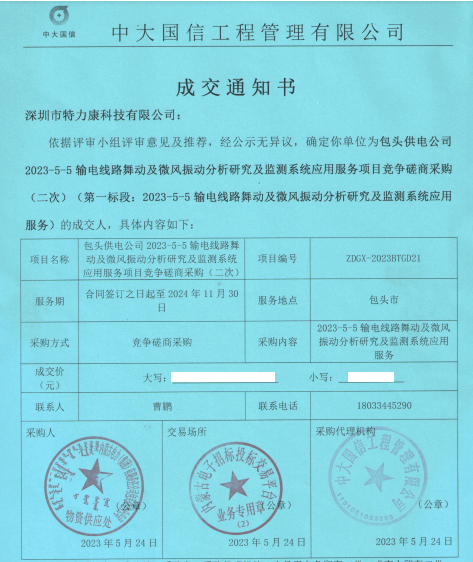 特力康中標(biāo)國(guó)網(wǎng)黑龍江送變電工程公司的2024年度第18次物資類競(jìng)爭(zhēng)性談判采購(gòu)項(xiàng)目——慶陽(yáng)驅(qū)鳥(niǎo)器物資框 特力康中標(biāo)國(guó)網(wǎng)甘肅省電力公司省管產(chǎn)業(yè)單位2024年第五次物資競(jìng)爭(zhēng)性談判授權(quán)采購(gòu)項(xiàng)目 中標(biāo)喜訊:深圳市特力康科技有限公司成功入圍許繼集團(tuán)綜合能源公司輸電線路視頻在線監(jiān)測(cè)裝置模塊集采項(xiàng)目 中標(biāo)喜訊:特力康成功中標(biāo)國(guó)網(wǎng)重慶市電力公司渝中一片區(qū)項(xiàng)目 特力康成功中標(biāo)國(guó)網(wǎng)天津市電力公司2024年第二次?物?資招標(biāo)項(xiàng)目 特力康中標(biāo)國(guó)網(wǎng)安徽省電力有限公司蕪湖供電公司2024年3月非物質(zhì)采購(gòu)項(xiàng)目 四川電力用特力康架空輸電線路山火監(jiān)測(cè)裝置,筑牢林區(qū)輸電 “防火墻”? 遼寧電力啟用特力康多視角監(jiān)拍裝置,全維度守護(hù)輸電安全? 破解黃土高原沉降難題:山西電力用特力康北斗裝置守桿塔安全? 山東電力啟用特力康動(dòng)態(tài)版智能激光驅(qū)鳥(niǎo)器,動(dòng)態(tài)防控守護(hù)變電站安全? 湖南超高壓電力啟用特力康球機(jī) AI 監(jiān)測(cè)裝置,智能守護(hù)輸電通道安全? 廣西電力啟用特力康高壓電纜護(hù)層環(huán)流監(jiān)控設(shè)備,筑牢電纜安全防線? 山東電力用上特力康綜合驅(qū)鳥(niǎo)器,多手段守護(hù)變電站安全? 陜西電力啟用特力康智能預(yù)警系統(tǒng),多維監(jiān)測(cè)守護(hù)輸電安全? 寧夏配電線路安裝了我司防外破電子化智能警示牌
