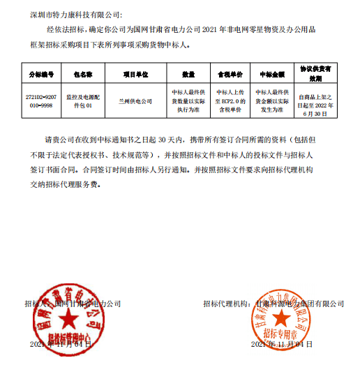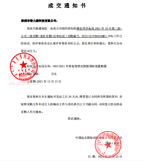 特力康中標(biāo)國網(wǎng)黑龍江送變電工程公司的2024年度第18次物資類競爭性談判采購項目——慶陽驅(qū)鳥器物資框 特力康中標(biāo)國網(wǎng)甘肅省電力公司省管產(chǎn)業(yè)單位2024年第五次物資競爭性談判授權(quán)采購項目 中標(biāo)喜訊:深圳市特力康科技有限公司成功入圍許繼集團(tuán)綜合能源公司輸電線路視頻在線監(jiān)測裝置模塊集采項目 中標(biāo)喜訊:特力康成功中標(biāo)國網(wǎng)重慶市電力公司渝中一片區(qū)項目 特力康成功中標(biāo)國網(wǎng)天津市電力公司2024年第二次?物?資招標(biāo)項目 特力康中標(biāo)國網(wǎng)安徽省電力有限公司蕪湖供電公司2024年3月非物質(zhì)采購項目 四川電力用特力康架空輸電線路山火監(jiān)測裝置,筑牢林區(qū)輸電 “防火墻”? 遼寧電力啟用特力康多視角監(jiān)拍裝置,全維度守護(hù)輸電安全? 破解黃土高原沉降難題:山西電力用特力康北斗裝置守桿塔安全? 山東電力啟用特力康動態(tài)版智能激光驅(qū)鳥器,動態(tài)防控守護(hù)變電站安全? 湖南超高壓電力啟用特力康球機(jī) AI 監(jiān)測裝置,智能守護(hù)輸電通道安全? 廣西電力啟用特力康高壓電纜護(hù)層環(huán)流監(jiān)控設(shè)備,筑牢電纜安全防線? 山東電力用上特力康綜合驅(qū)鳥器,多手段守護(hù)變電站安全? 陜西電力啟用特力康智能預(yù)警系統(tǒng),多維監(jiān)測守護(hù)輸電安全? 寧夏配電線路安裝了我司防外破電子化智能警示牌