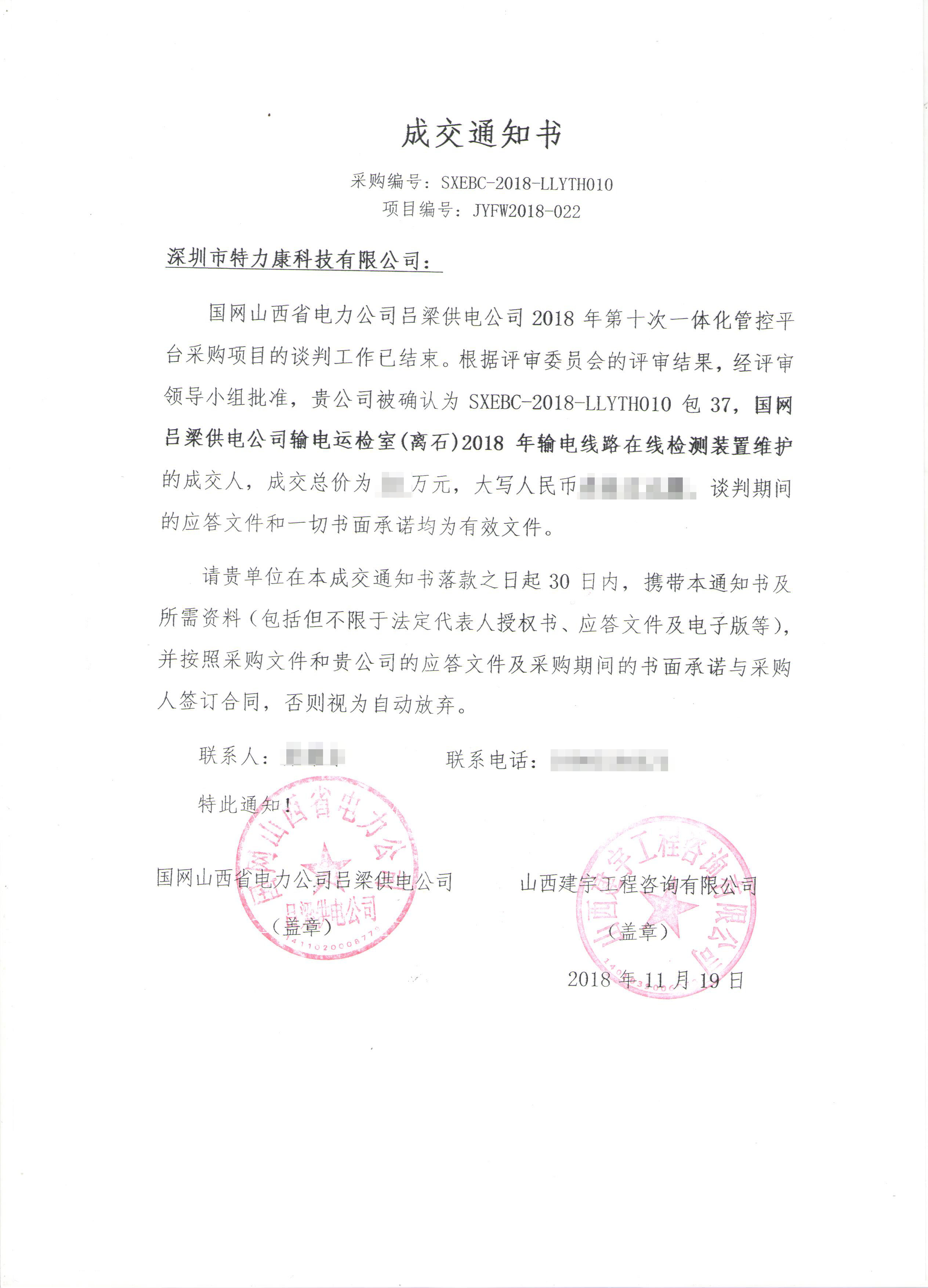 國網(wǎng)山西省電力公司2018年第十次一體化管控平臺采購項目評審工作已結(jié)束,經(jīng)評審委員會評審,經(jīng)國網(wǎng)山西省電力公司招投標(biāo)領(lǐng)導(dǎo)小組批準(zhǔn),將評審結(jié)果公示。我司被確定為中標(biāo)單位現(xiàn)將公告公示。