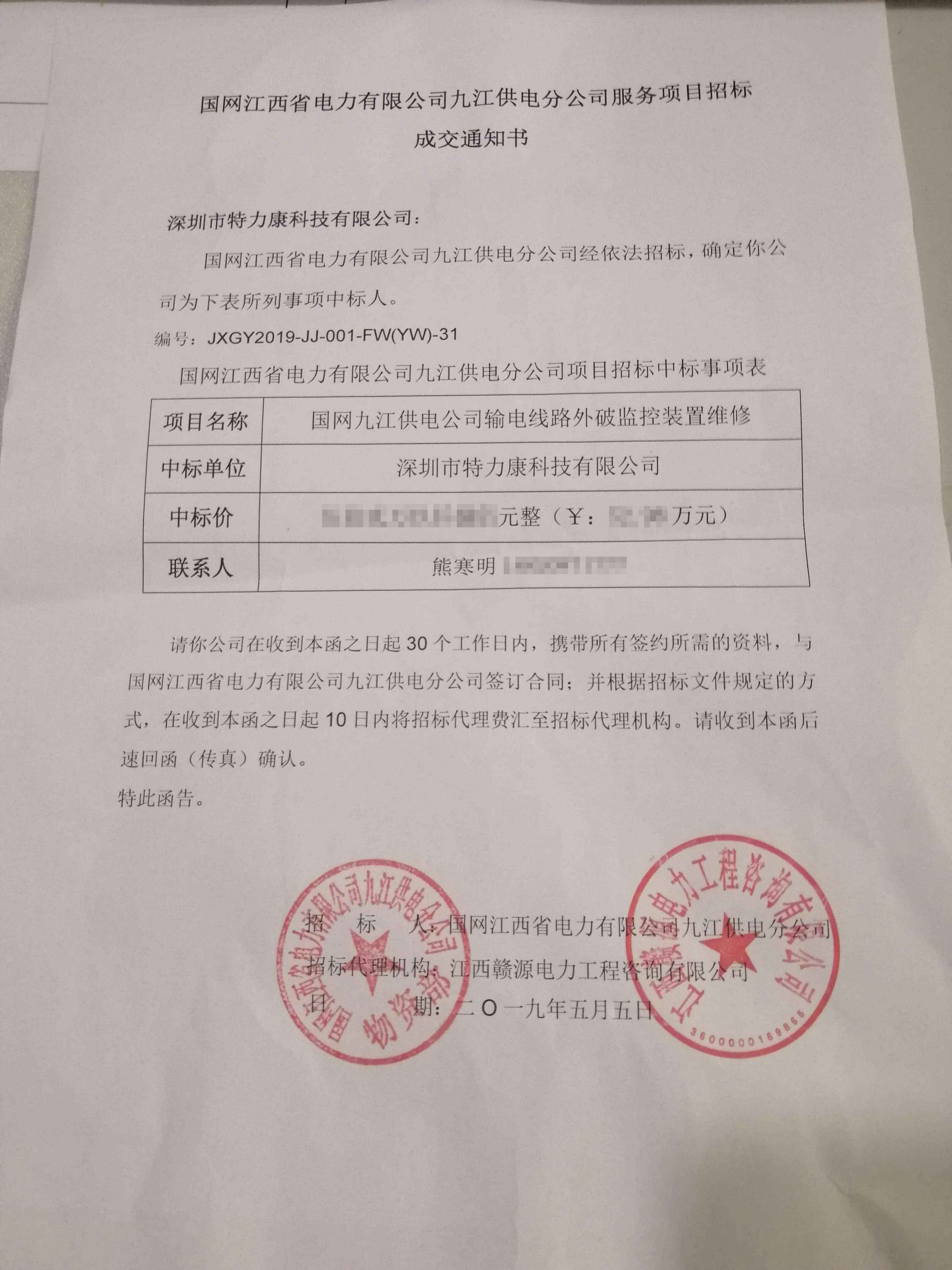 國(guó)網(wǎng)江西九江供電有限公司輸電線路防外破監(jiān)控裝置采購(gòu)項(xiàng)目評(píng)審工作已結(jié)束,經(jīng)評(píng)審委員會(huì)評(píng)審,經(jīng)國(guó)網(wǎng)江西九江供電有限公司招投標(biāo)領(lǐng)導(dǎo)小組批準(zhǔn),我司被確定為此次輸電線路防外破監(jiān)控裝置采購(gòu)項(xiàng)目中標(biāo)單位現(xiàn)將公告公示。
